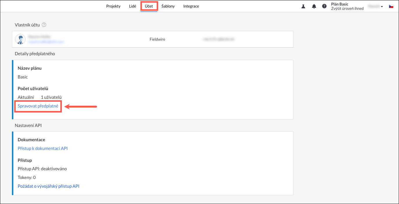 Fieldwire automaticky upraví vaši měsíční fakturu podle celkového počtu uživatelů ve vašem účtu a projektech. Pokud přidáte uživatele ke svému měsíčnímu prémiovému předplatnému, vaše měsíční faktura bude zahrnovat poměrný poplatek za čas, který uživatelé až do začátku dalšího měsíce strávili prací na vašem projektu nebo ve vašem účtu. Stejně tak pokud z měsíčního předplatného uživatele odeberete, dostanete kredit za nevyužitý, ale zaplacený čas.
