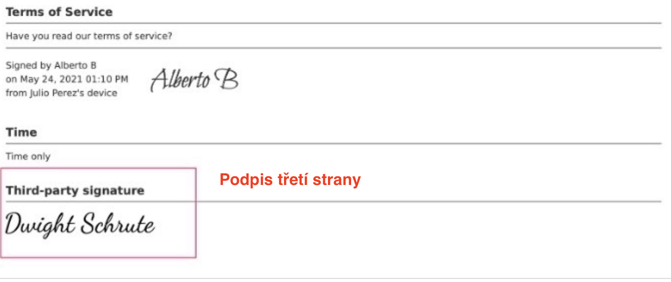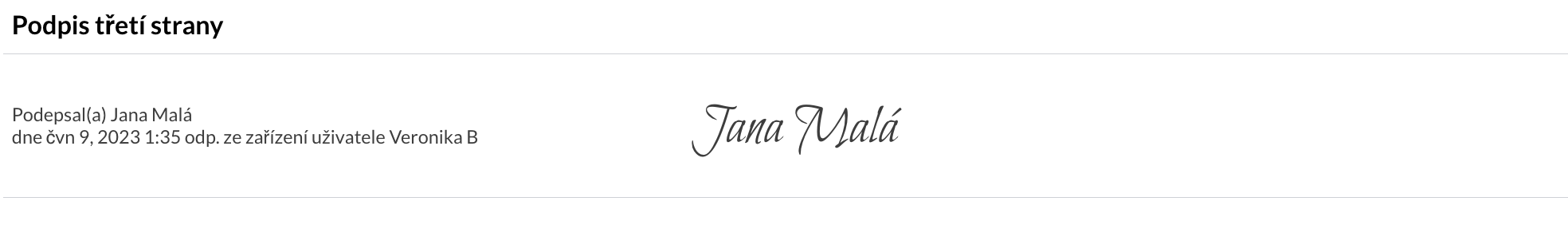 4. V sekci podpisu se zobrazí jméno příslušné osoby, čas, datum a elektronický podpis: