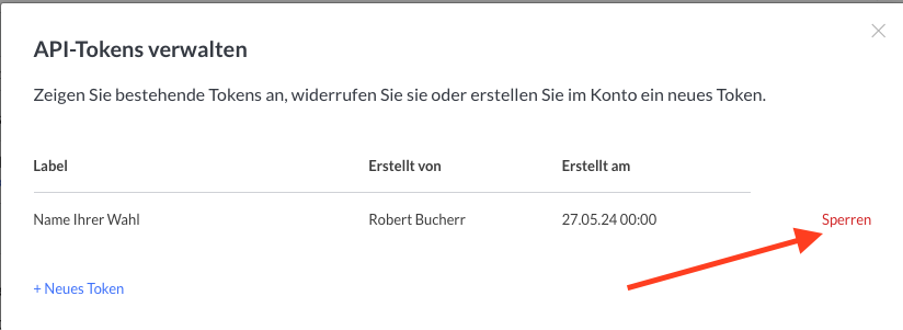 Wenn Sie das Popup versehentlich schließen, können Sie das Token widerrufen und ein neues generieren.
