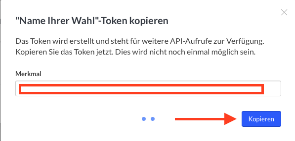 5. Das folgende Popup-Fenster zeigt nun ein eindeutiges API-Token an. Bewahren Sie dieses Token an einem sicheren Ort auf, da Sie nach dem Schließen des Popup-Fensters nicht mehr darauf zugreifen können.