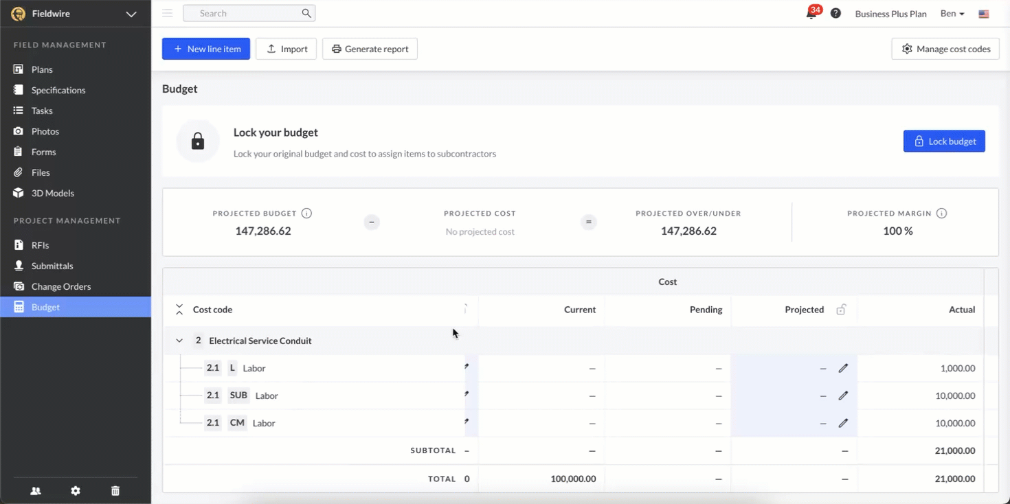 Budgets in Fieldwire