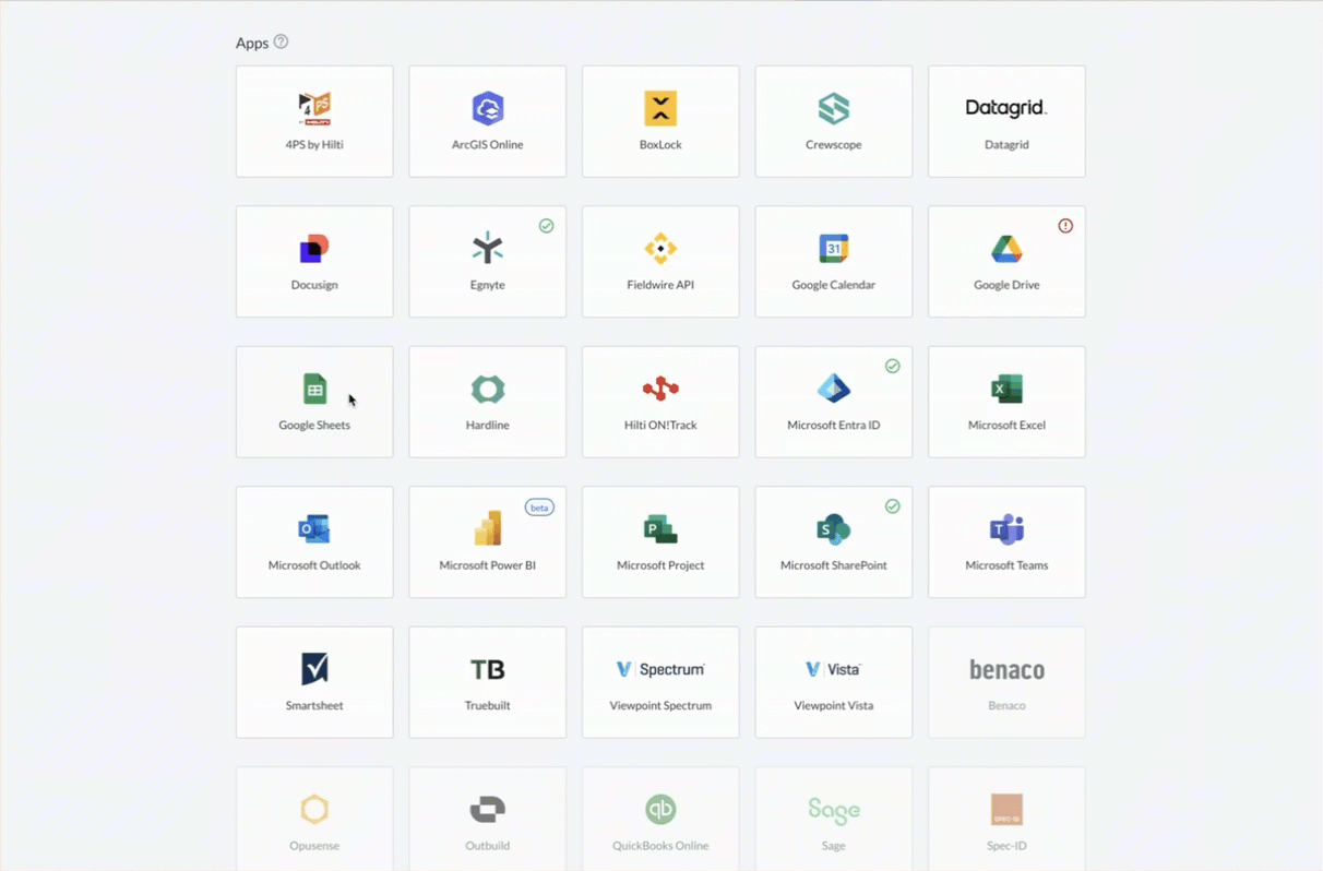 - In Fieldwire, navigate to the Integrations tab