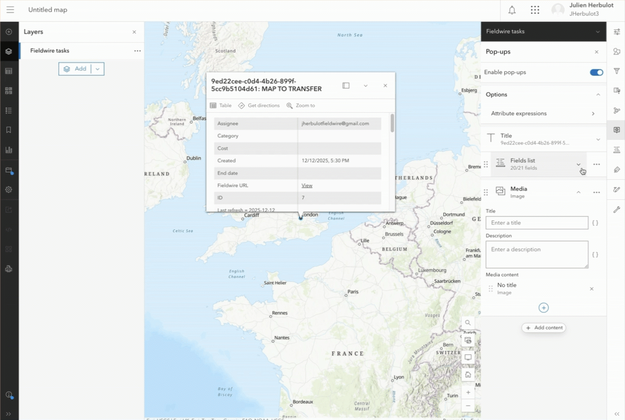- Add the Fieldwire layer to ArcGIS Online