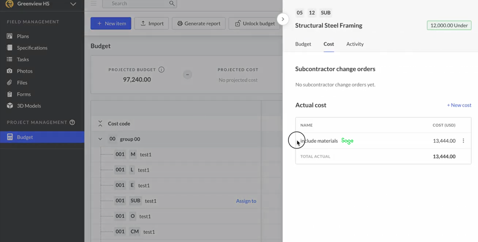 We recommend using the same budget line items in all your Fieldwire projects and using Sage standard cost code catalog. That way, the setup will be streamlined.