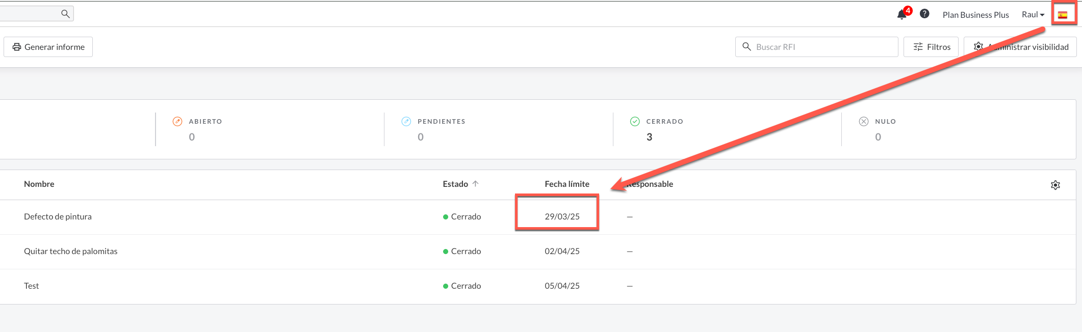 Puedes configurar el idioma que deseas usar en la web haciendo clic en el icono de la bandera en la parte superior derecha y luego seleccionando el idioma correspondiente.