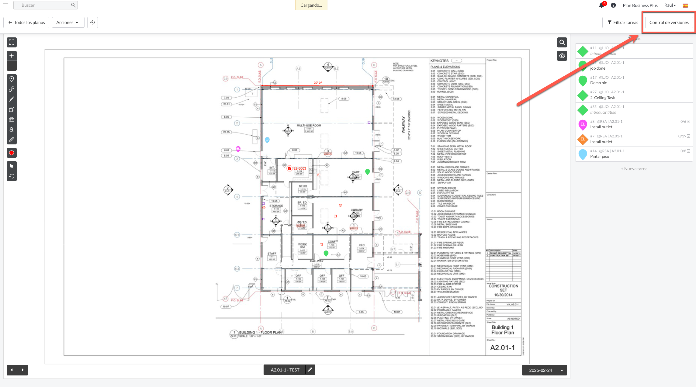 La función de control de versiones de Fieldwire te permite elegir qué versión de tus planos deseas ver. Cuando subes una nueva versión de tu plano, Fieldwire superpone la nueva versión sobre la versión antigua para transferir todas las marcas, anotaciones y archivos adjuntos a la nueva versión.