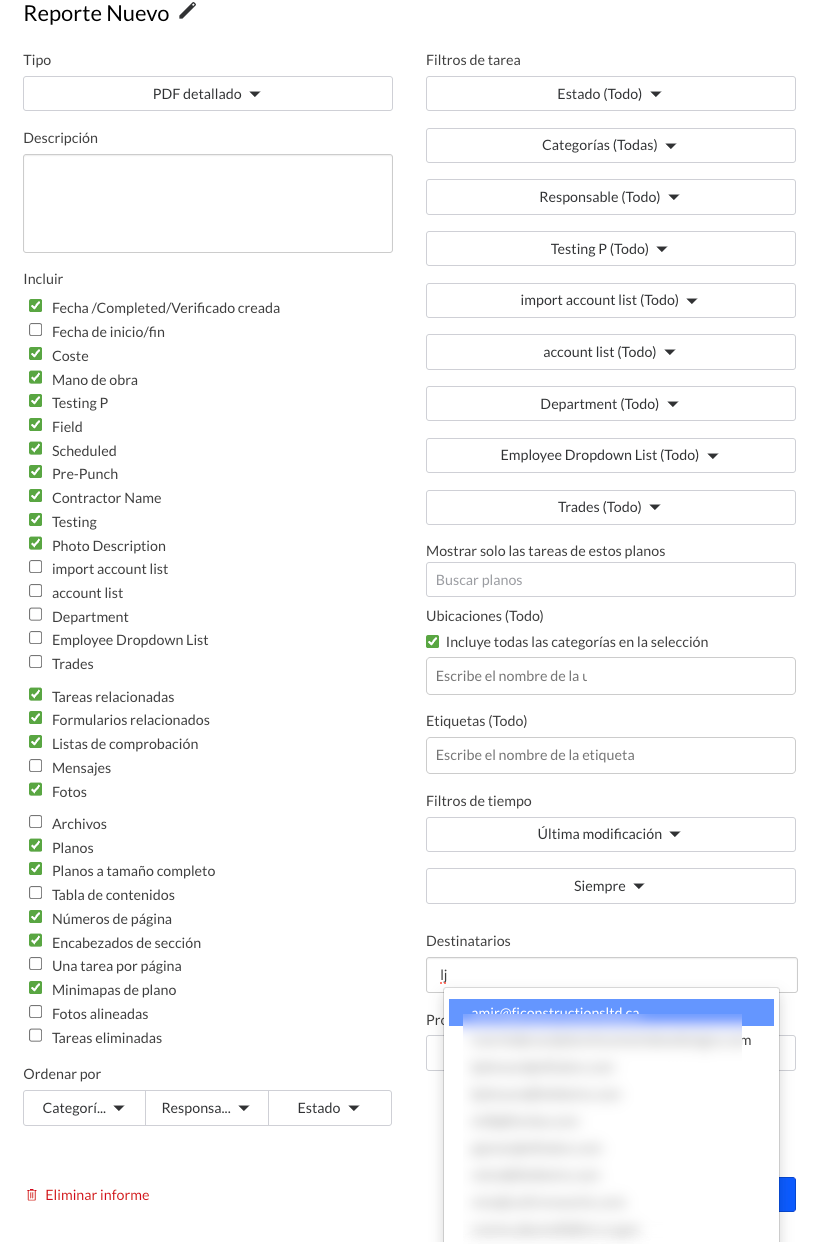 Este comportamiento se refleja también cuando envías informes o tareas a un destinatario por correo electrónico.