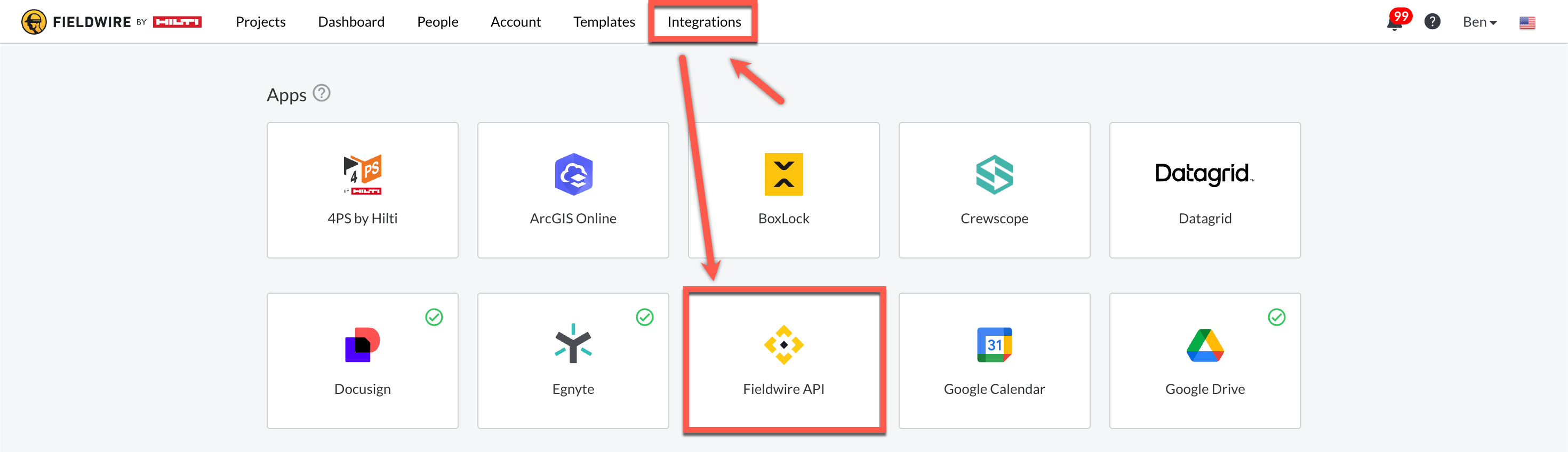 - Esta integración SÍ requiere acceso a la API de Fieldwire.