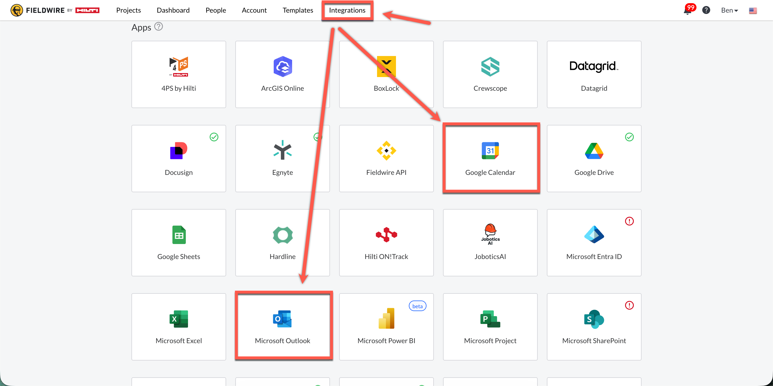 - Cuando los usuarios desean ver sus tareas en Google Calendar o Outlook, pueden hacerlo con esta integración.