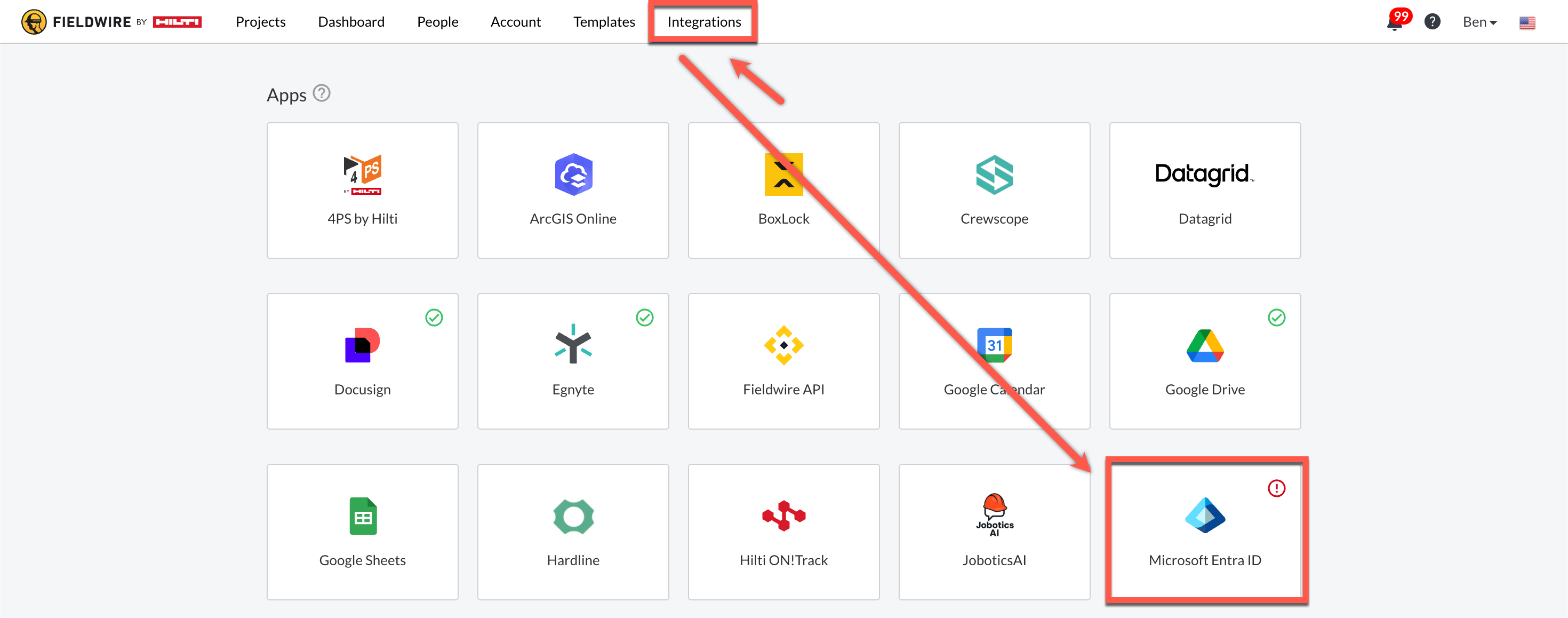 - Los usuarios que utilicen esta integración con Fieldwire podrán sincronizar rápidamente un grupo de usuarios que existen en Entra ID directamente con Fieldwire.