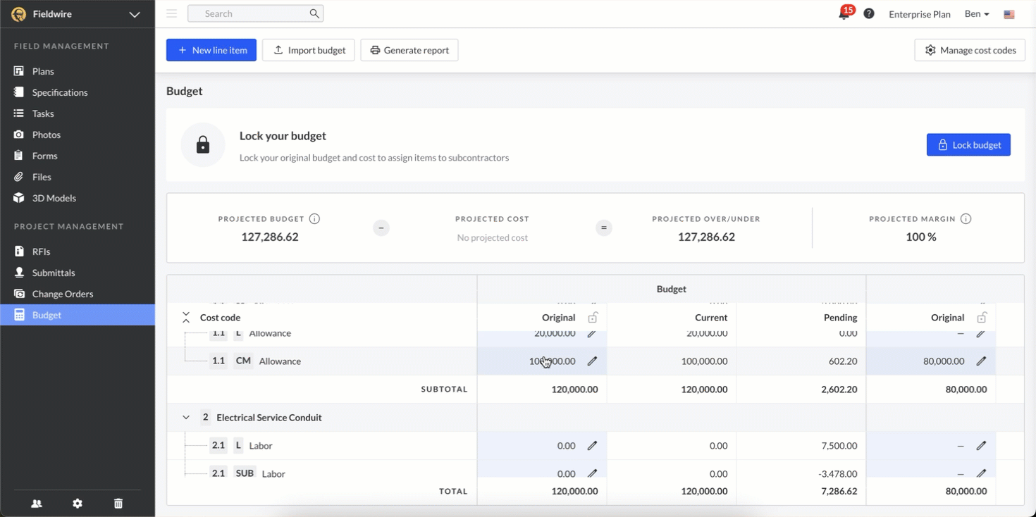 Il modulo Budget è l’ultima novità nella suite di strumenti di gestione progetti di Fieldwire, pensata per offrire un metodo chiaro e strutturato per gestire gli aspetti finanziari dei progetti di costruzione. Impostando aspettative di costo e dettagliando tutte le spese necessarie, l’utilizzo del modulo Budget aiuta a mantenere il progetto sotto controllo dal punto di vista economico, dall’inizio alla fine.