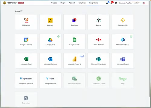 - In Fieldwire, clicca sulla scheda Integrazioni
