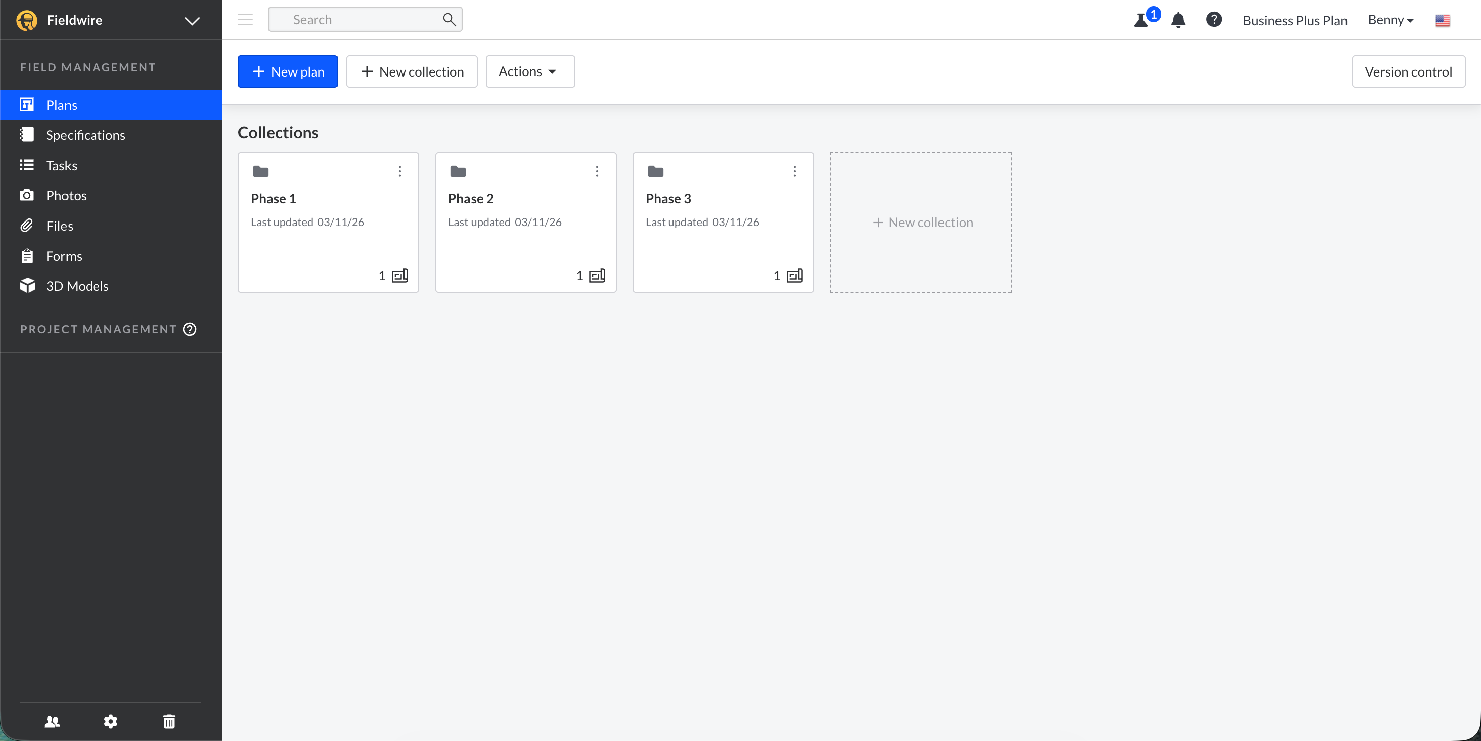 - Fieldwire crea automaticamente la prima Raccolta.