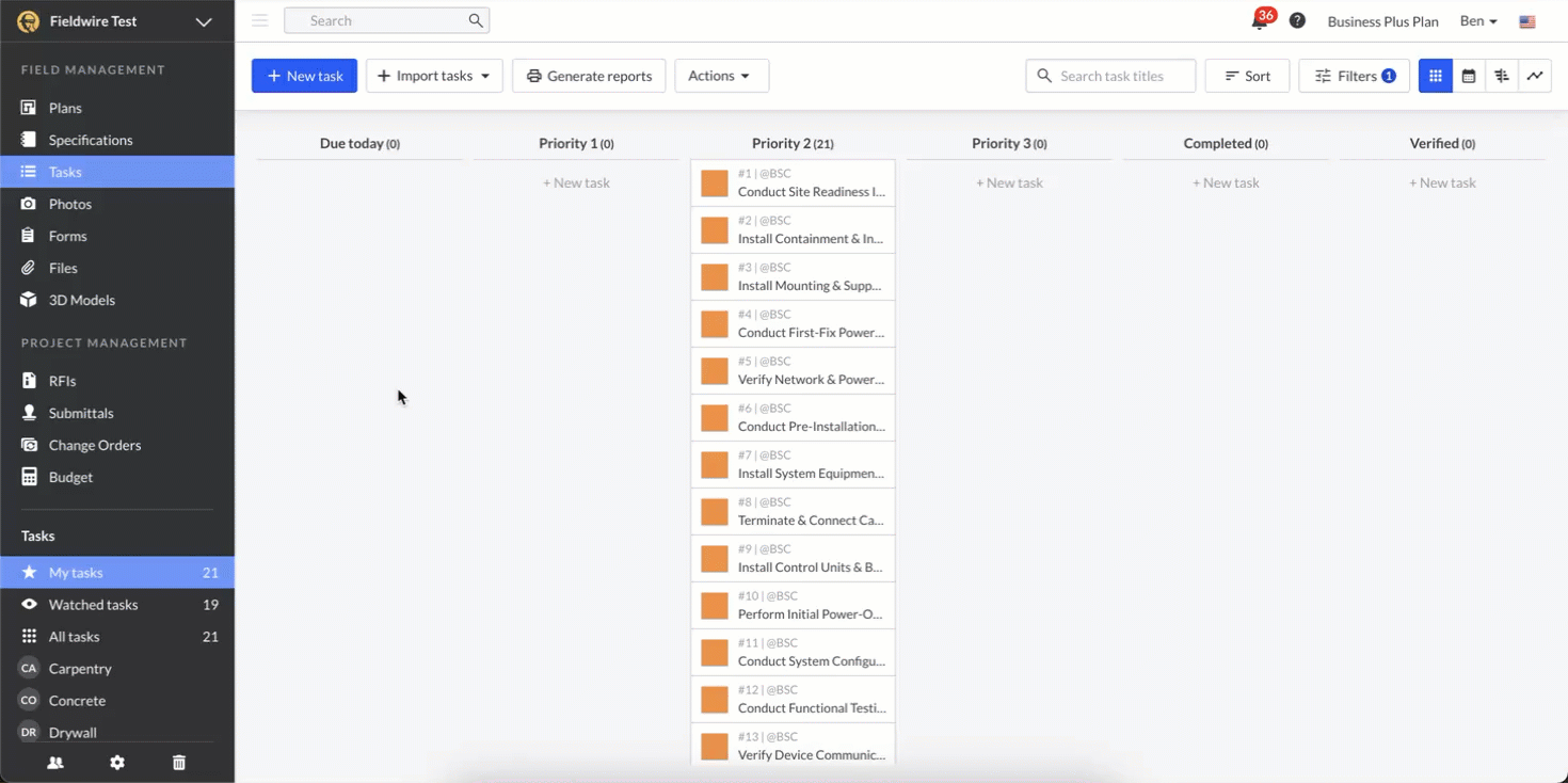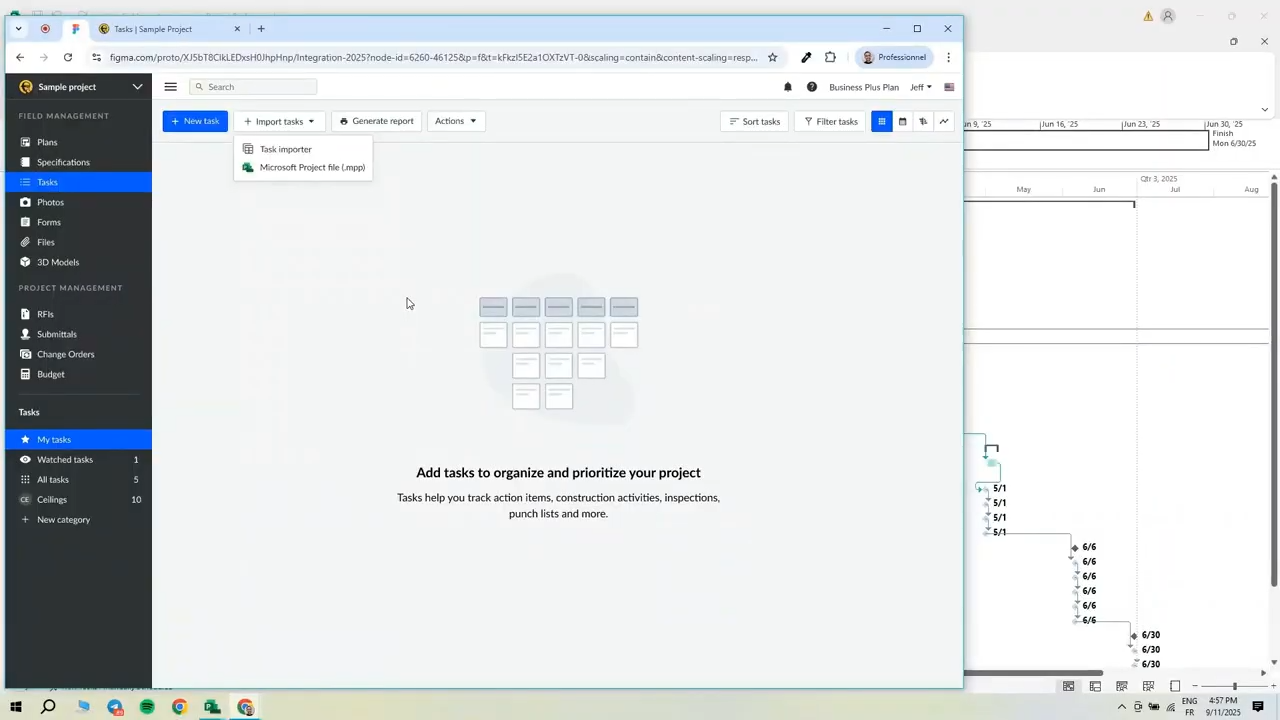 Una volta configurato il tuo progetto in MS Project, dovrai importare le attività nel tuo progetto Fieldwire. Per farlo, segui questi passaggi: